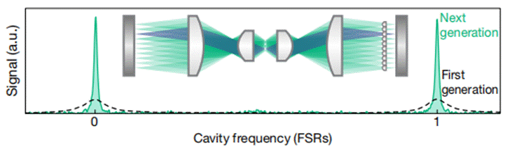 论文中还展示了最新的下一代设计原型。该设计用第二个4f望远镜和平面端镜取代了弯曲端镜,消除了第一代中因镜面反射导致的模式空间反转和双陷阱问题。在真空外测试中,实现了超过