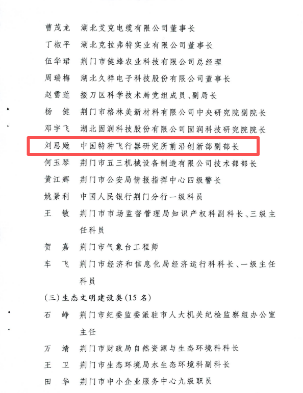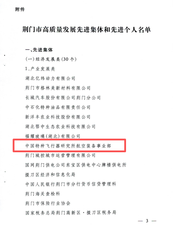 2月27日,荆门市“起好步·开新局”大会召开,会上公布了荆门市高质量发展先进集体和先进个人名单。 特飞所 航空 装备事业部获得“先进集体”荣誉称号,前沿创新部副部长刘思飏获得“先进个人”荣誉称号。