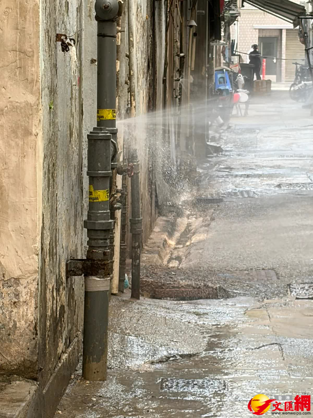 後巷水喉噴出水柱。香港文匯報記者黃宇威攝