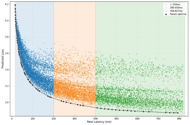 在两个模型的基础上,理想开发了 PLAS(帕累托最优 LLM 架构搜索)框架。你可以把它理解为一个「自动选配师」。给它输入芯片的硬件参数(算力、带宽、缓存层次)和工程约束(延迟、功耗、内存),它就能自动吐出最优的模型架构方案。