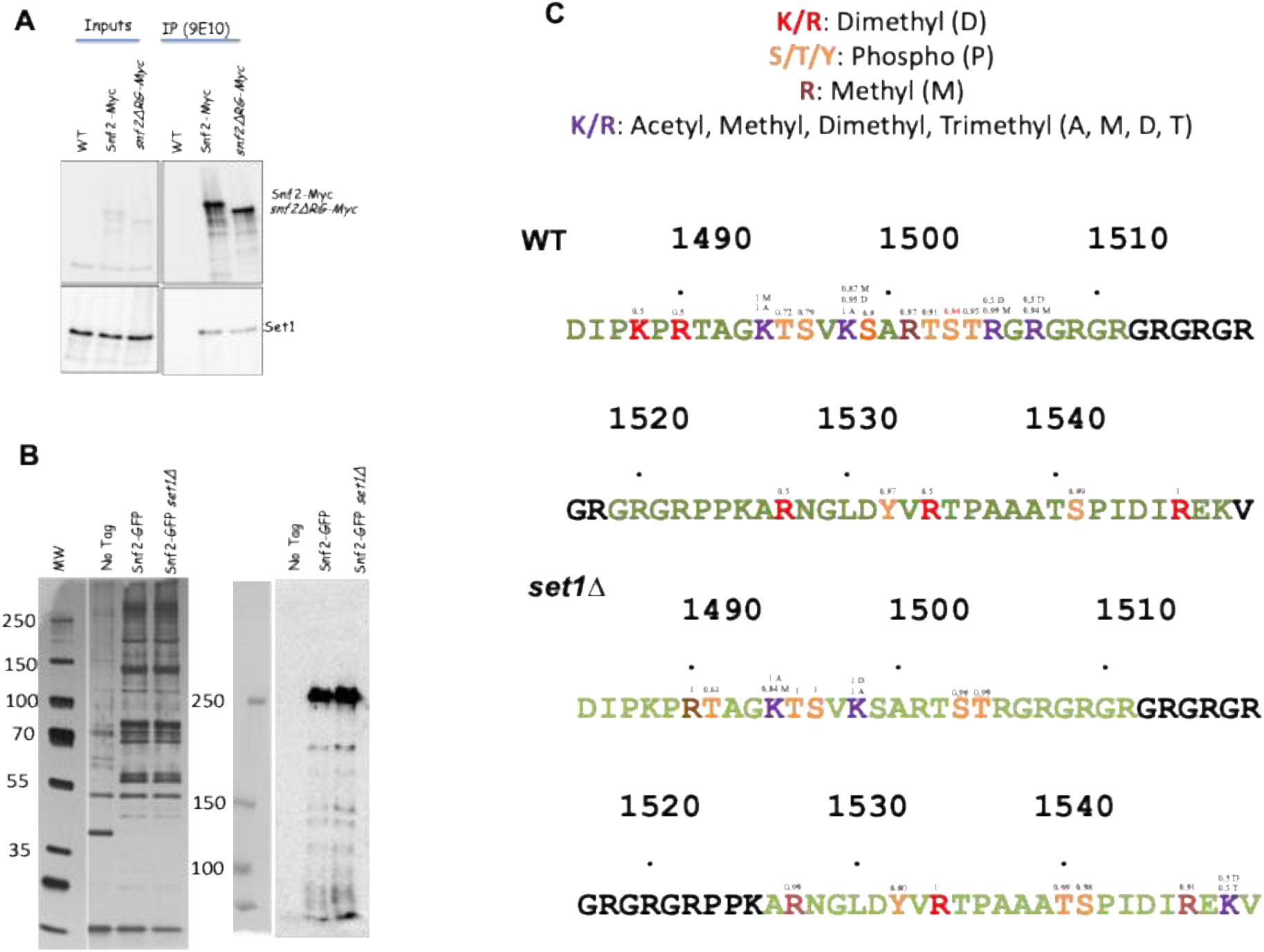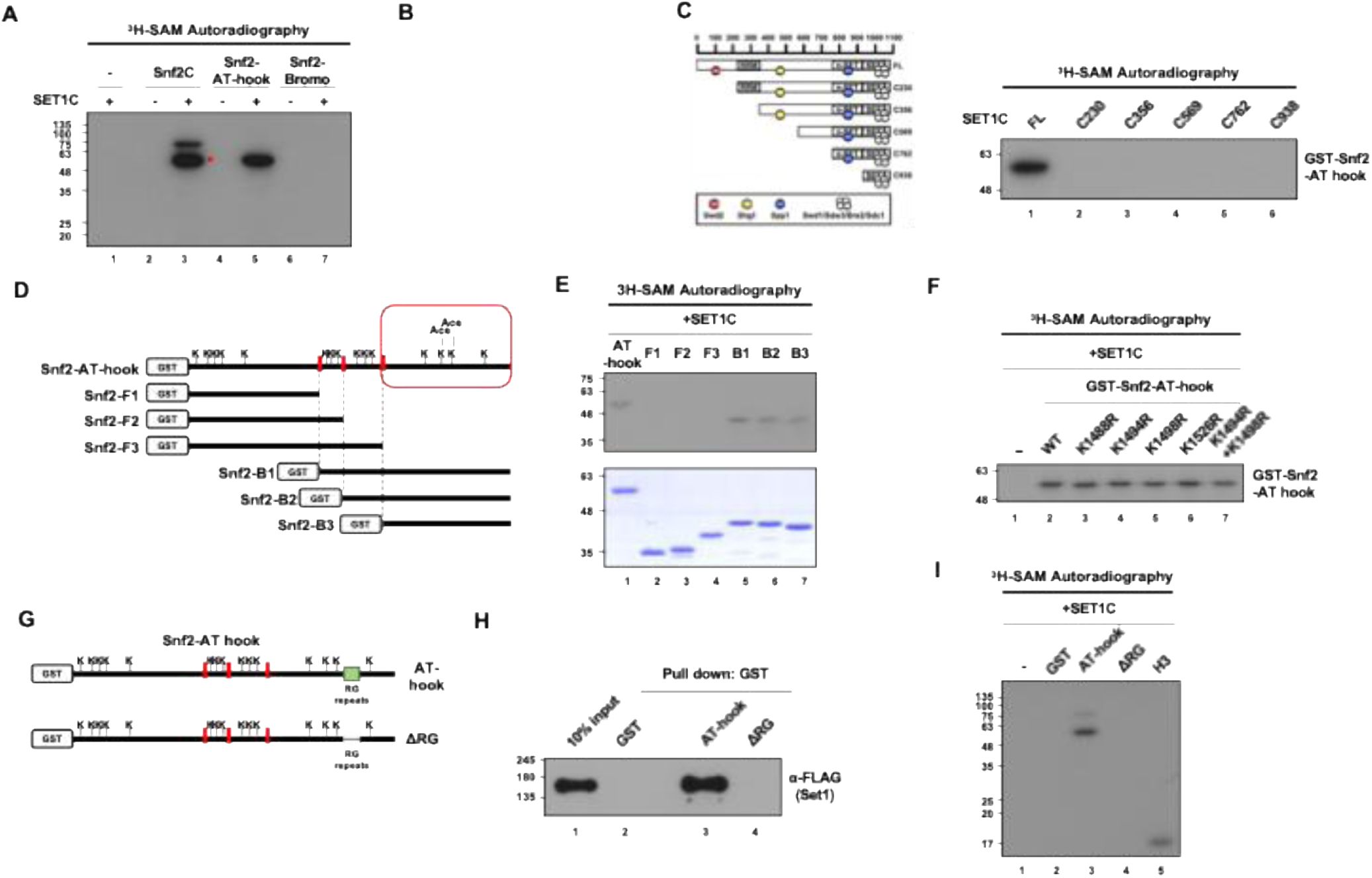 suggesting that H3K4-like domains may represent a class of non-histone substrates for SET1C. We further reveal that reconstituted SET1C interacts with the AT hook domain of the chromatin remodeler Snf2 and methylates multiple arginines within this domain.