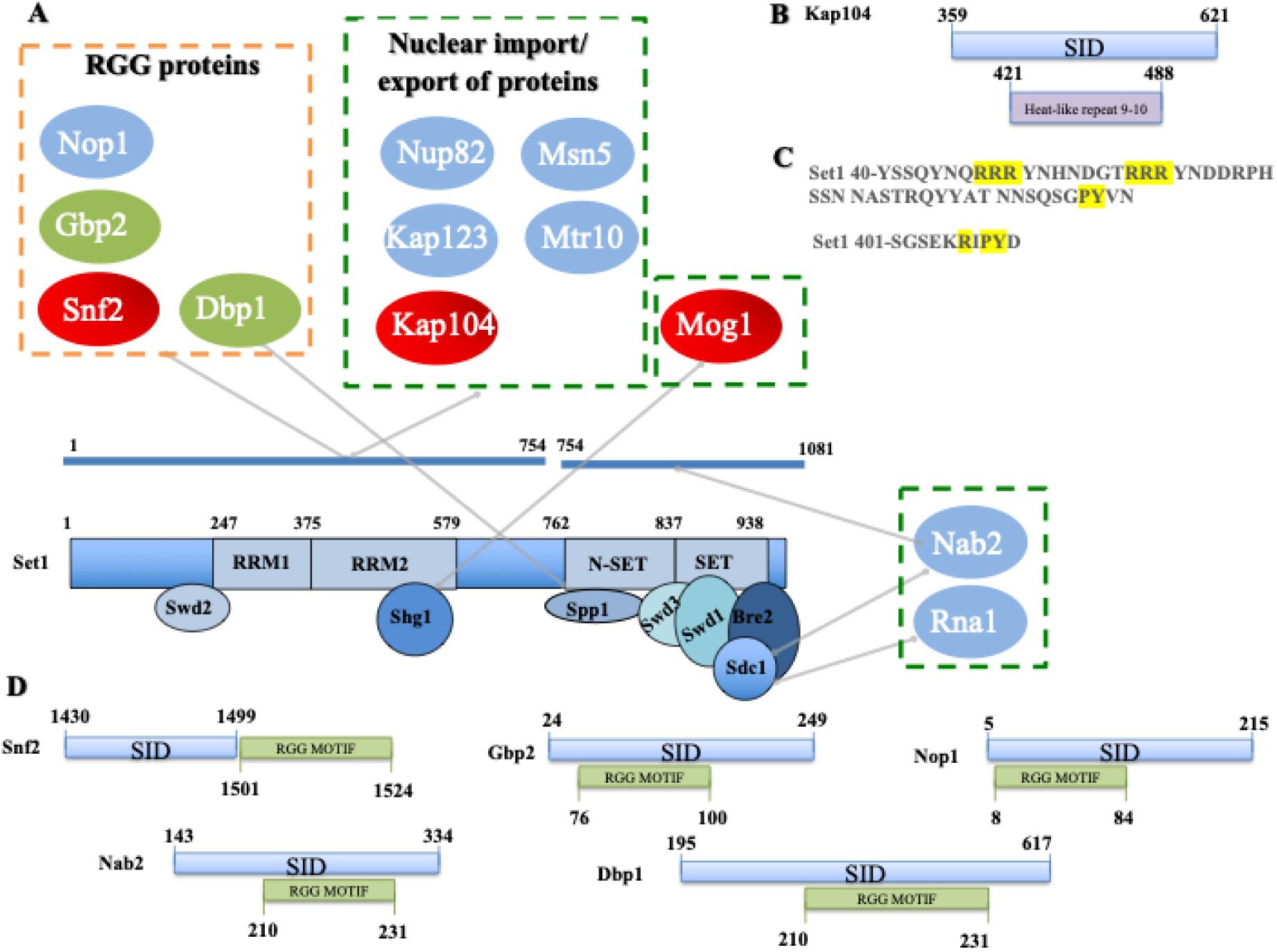 ). For its side, Spp1 associates with the N-SET domain of Set1, while Shg1 binds to the central region of Set1 and Swd2 contacts the N-terminal region of Set1 (