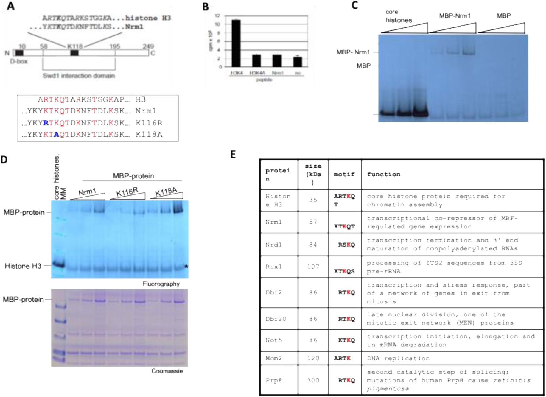 ). Interestingly, various lysines distributed between Nrd1, Nab3 and Sen1, are methylated, notably lysine 363 in the RNA Recognition Motif (RRM) of Nab3 whose mono methylation depends on Set1 and Set3 (