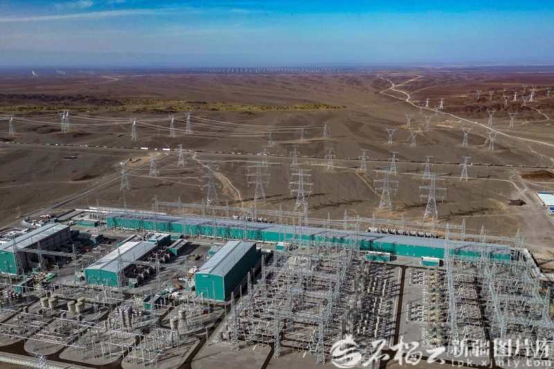 2025年6月14日在巴里坤哈萨克自治县三塘湖镇拍摄的哈密—重庆±800千伏特高压直流输电工程巴里坤换流站外景。石榴云/新疆日报记者 蔡增乐 摄