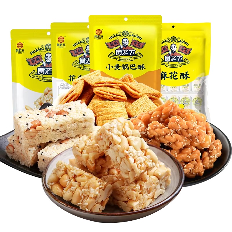 四川特产,黄老五花生酥 + 米花酥 + 麻花酥 1.45 斤 19 元再发车
