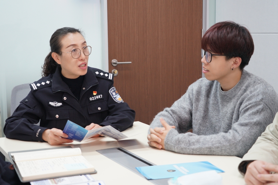 张伟和同事进企业开展打击防范经济犯罪安全宣传。采访对象供图
