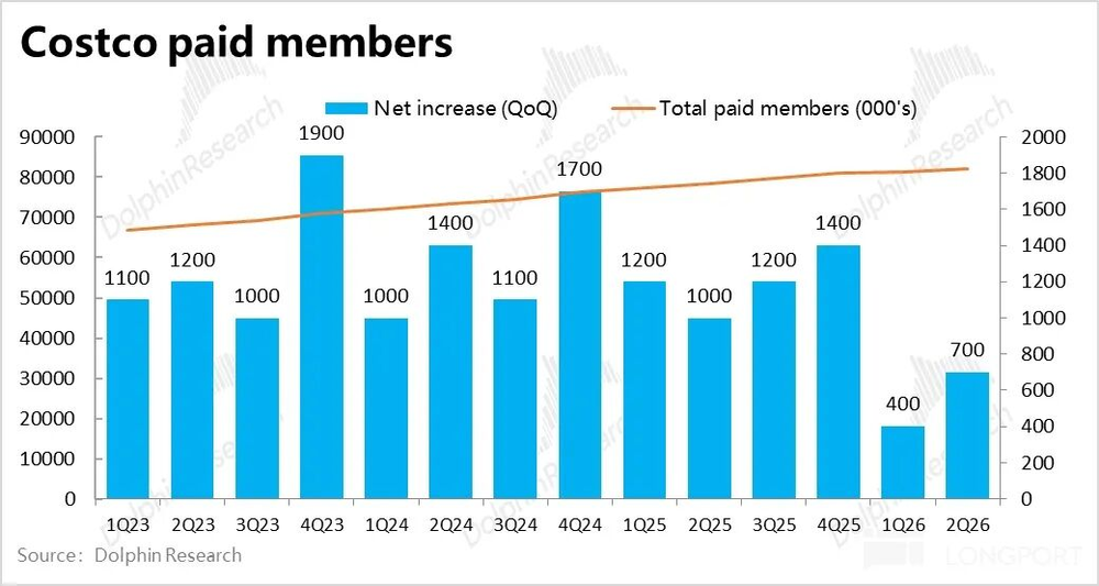 根据公司先前的解释,续费率持续下滑、以及付费会员增长还是偏弱,主要是疫情后,Costco通过线上渠道或者折扣渠道,拓展了大量非Costco核心目标客群的新用户,因此拖累了续费率。