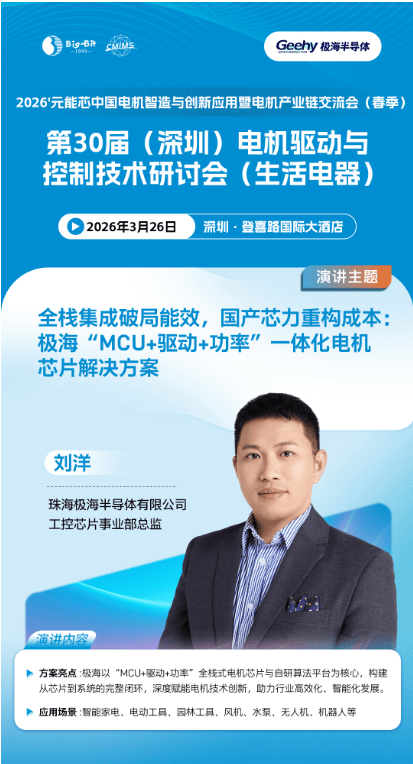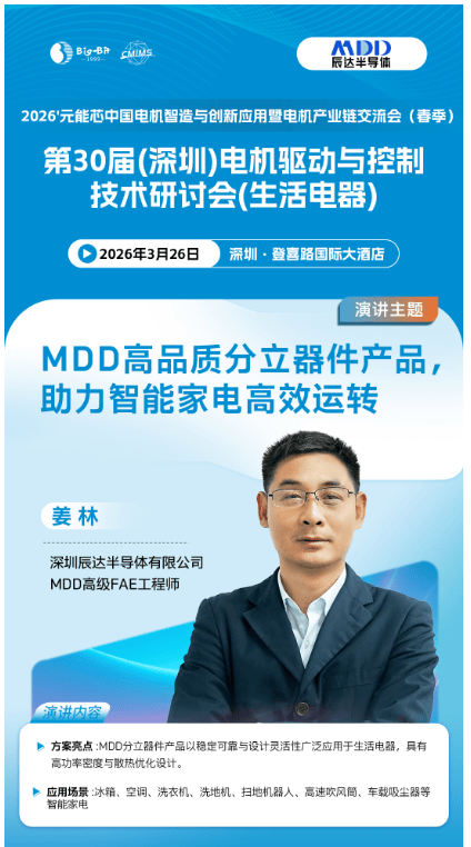 随着智能家电、新能源汽车与人形机器人三大赛道的加速迭代,电机驱动控制、能效优化及机器人关键模组技术正成为电机产业升级的核心引擎。为破局内卷、智领电机未来,由Big-Bit商务网主办、《半导体器件应用》杂志承办的2026'元能芯中国电机智造与创新应用暨电机产业链交流会(春季)将于2026年3月26日在深圳登喜路国际大酒店隆重举行。