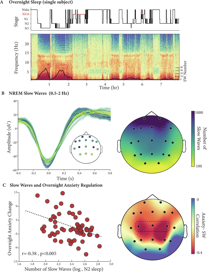 如今,研究人员已经开始探索非侵入性脑刺激等新兴技术,试图在夜间温和地增强慢波活动,并观察其对次日焦虑的影响;如果这一方向取得突破,未来我们或许能拥有针对焦虑症、