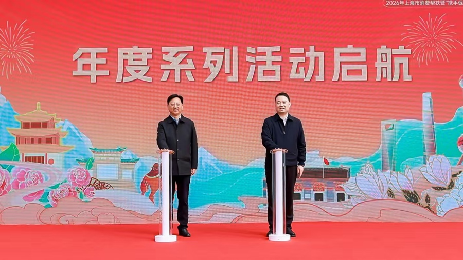 在全场瞩目下,与会领导与嘉宾共同推动象征年度行动正式开启的“共富之帆”船模。随着汽笛鸣响、风帆扬起、彩花齐发,2026年上海市消费帮扶暨“携手促振兴”系列活动正式宣告启航。上海市政府合作交流办对口协作处处长刘军表示,面对新阶段新要求,将创新机制、激发动力,立足长远、久久为功,一步一个脚印把工作做实,让“共富之帆”行得更稳、驶得更远。