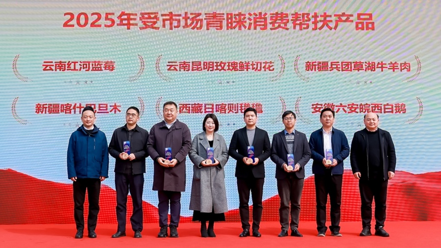 现场发布了2025年度消费帮扶三大荣誉榜单。云南红河蓝莓、云南昆明玫瑰鲜切花、新疆兵团草湖牛羊肉、新疆喀什巴旦木、西藏日喀则氆氇、安徽六安皖西白鹅被评为“2025年受市场青睐消费帮扶产品”。“罗乐云飨·里厢”直营店、有风小院直营店、初心为爱公益基金会、星巴克公益基金会、淘宝闪购、字节跳动(抖音)获颁“2025年精诚合作伙伴”。西藏亚东国门巴夏、云南怒江-迪庆秘境文旅、云南大理永平花桥村、福建三明沙县小吃、上海·三峡号、红领巾广播站被授予“2025年具引领力区域品牌”。