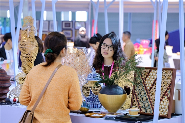 “万象奇市”创意市集另辟蹊径,14家原创品牌将非遗竹编、天然水晶、潮玩IP融入软装,成为展会中最具烟火气与创意感的打卡地。