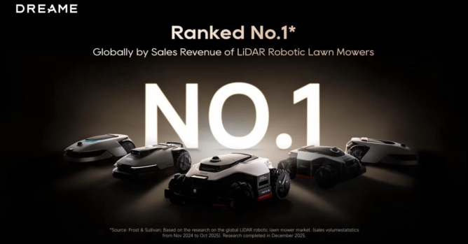 此次重磅合作是双方在智能庭院赛道战略协同的深化。2025 年,禾赛与追觅正式签署战略合作协议,并签订了 30 万颗 JT 系列激光雷达的定点合作。禾赛科技凭借激光雷达领域深厚的技术积累和规模化制造能力,为追觅提供了具备高精度、高可靠性的感知核心,助力其产品在复杂多变的户外环境中实现厘米级精准建图与全向避障。据弗若斯特沙利文(Frost & Sullivan)认证,2025 年追觅品牌已斩获全球激光雷达割草机器人销售额第一的桂冠。
