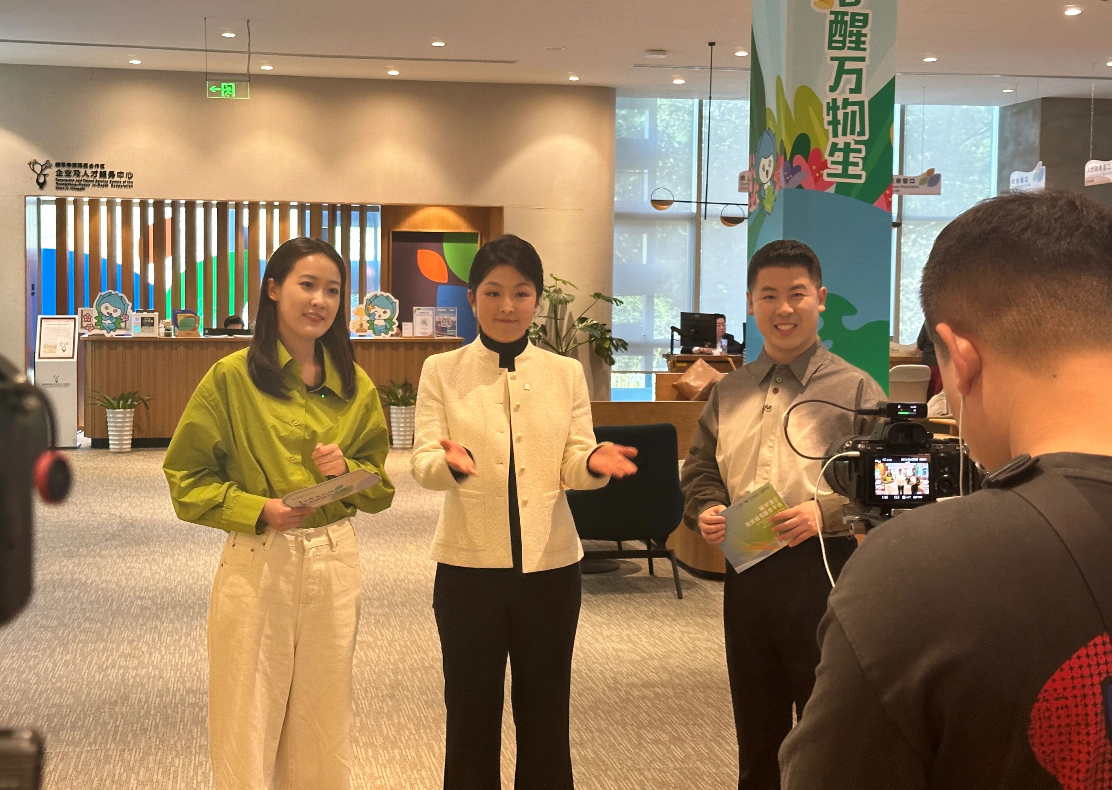 随后,记者和主播们来到合作区企业及人才服务中心,该中心采用“政府主导、国企运营”模式,搭建“一站式”服务平台,提供专业、高效的企业及人才服务。在与入驻的澳资企业交流时,一位澳门创业者分享:“中心为我们配备了专属项目经理,从商事登记到人才补贴,再到法律税务咨询,服务高效便捷,真正打通了落户的‘最后一公里’。”