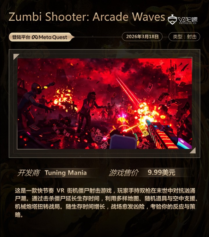 VR游戏周报·第184期,统计3月13日~3月19日期间上线的VR游戏,新作介绍共计7款,后文按照发售时间排序。截至2026年3月19日,各主要VR平台的内容数量如下: