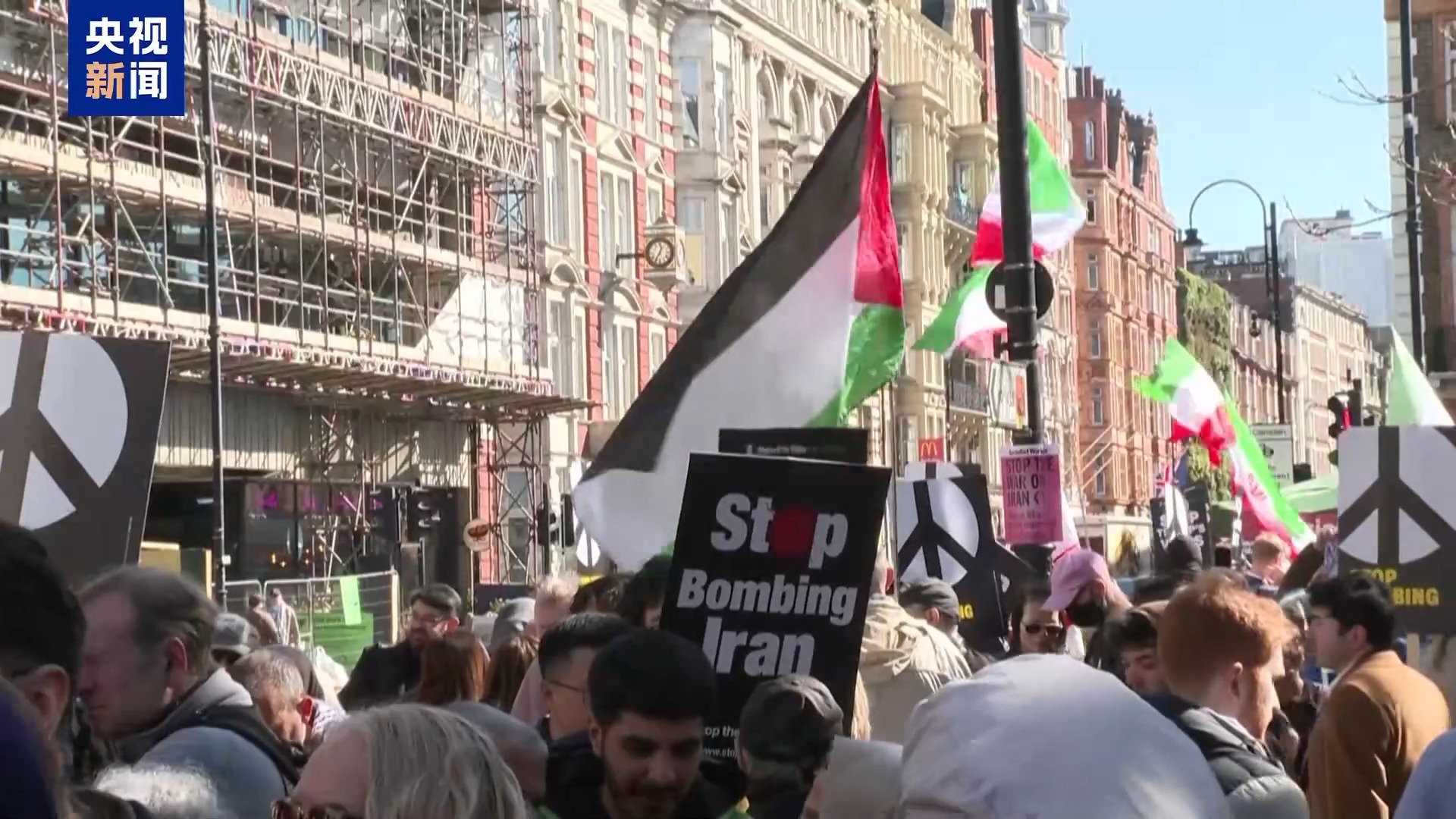 当地时间21日,英国伦敦市中心举行反战集会,大批示威者反对美国和以色列对伊朗的军事行动,呼吁立即停火,缓解中东紧张局势。总台记者 杨兢兢:英国当地民众正在伦敦市中心举行集会,抗议美国和以色列对伊朗进行军事行动,表达对中东局势的担忧。