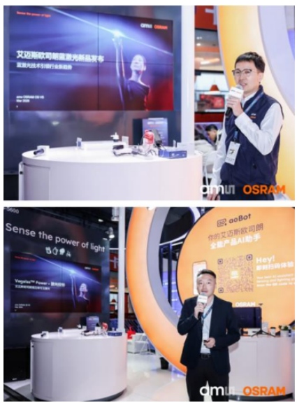 艾迈斯欧司朗工作人员现场介绍两款蓝激光产品,诠释如何以精准光源回应多元应用需求