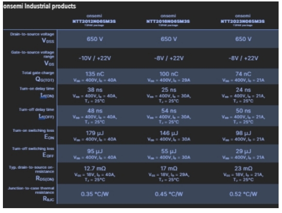 图 2:安森美T2PAK封装EliteSiC M3S系列MOSFET的规格参数