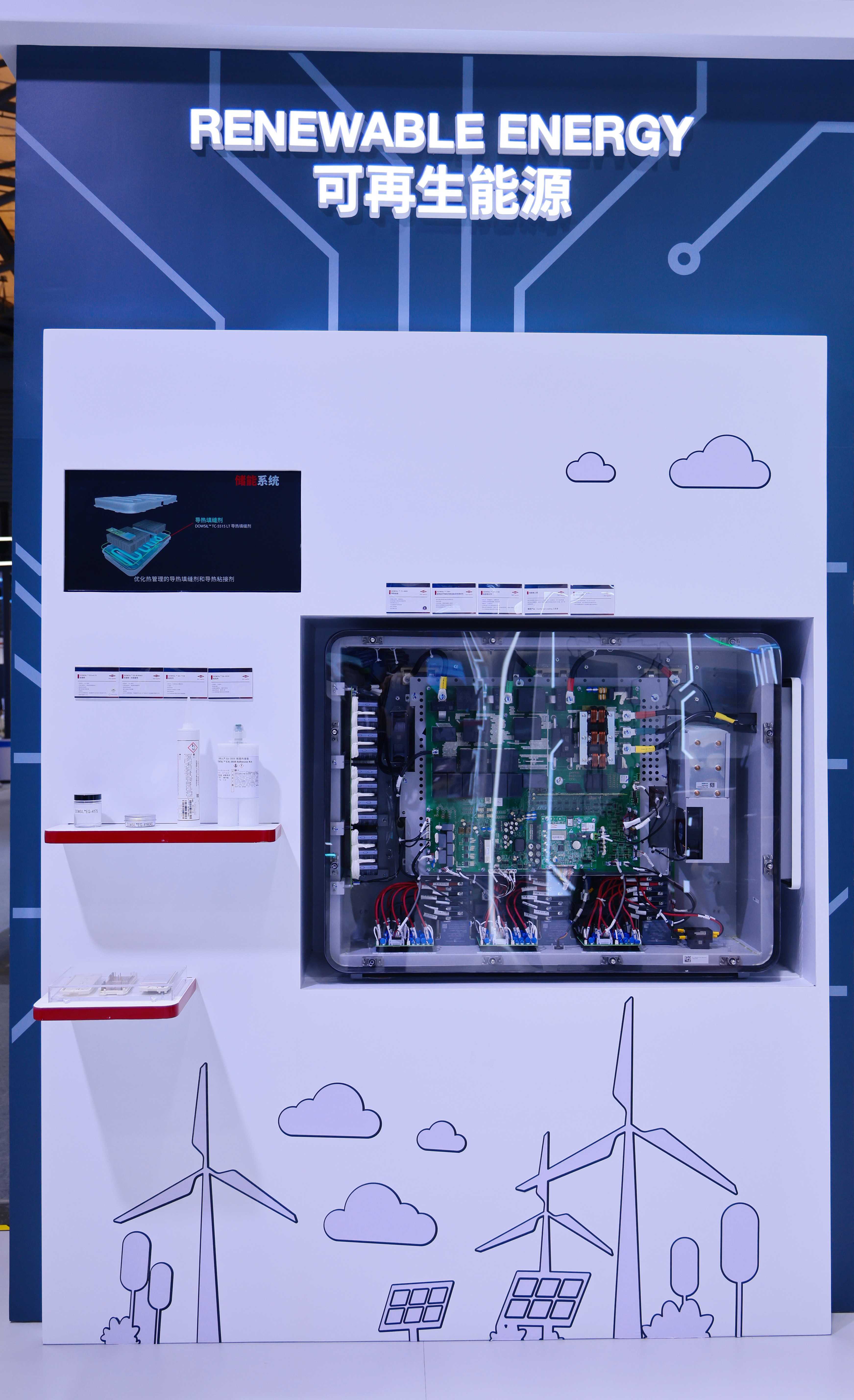 在光伏、风电等可再生能源基础设施中,如何保障、提升IGBT / SiC功率模块的可靠性就显得尤为重要。为此,陶氏公司着重展示了四款核心产品: