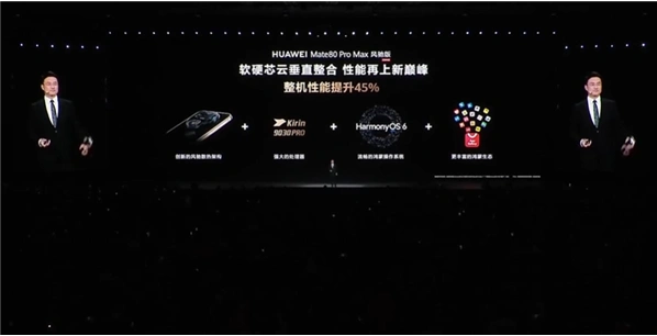 在麒麟9030 Pro、风驰散热架构和鸿蒙6的加持下,华为Mate 80 Pro Max风驰版整机性能提升45%。