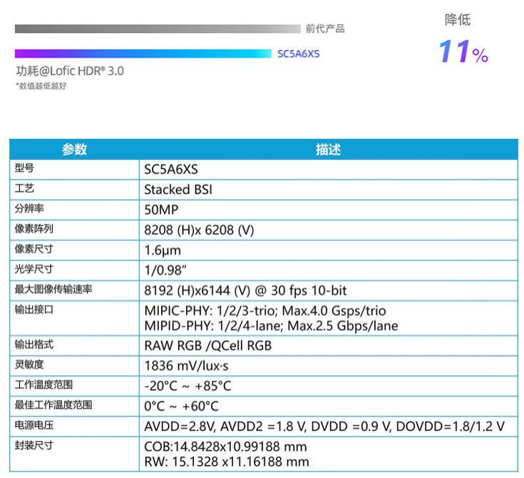 ,SC5A6XS首发搭载思特威全新一代Lofic HDR® 3.0技术,实现了像素性能的全面优化,将为旗舰级智能手机主摄带来卓越的超高动态范围视频质感。