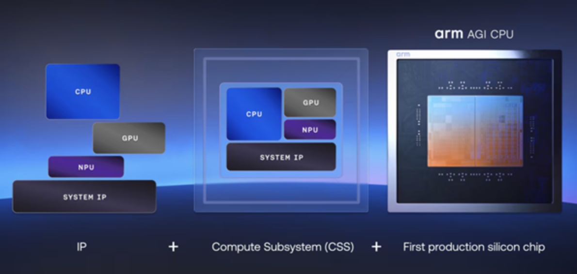 (Agentic AI)对异构计算需求的指数级增长,单纯的 IP 和计算子系统授权已难以完全消纳市场对于算力部署时效性的渴求。Arm AGI CPU的发布,标志着这家处理器架构巨头正式跨越“从设计到实体”的战略藩篱,通过提供量产级自研芯片,补齐了其从 IP、计算子系统(CSS)到量产芯片(Full Chip)的最后一块拼图。这不仅是 Arm 35 年史上的战略质变,更是其在全球