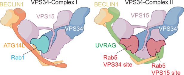 Previous work showed that Rab1 binds and activates VPS34 complex I, whereas Rab5 binds and activates VPS34 complex II at an almost identical site (