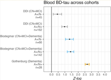 阿尔茨海默病(Alzheimer's disease,AD)的核心病理特征包括β淀粉样蛋白(Aβ)斑块、tau蛋白神经原纤维缠结及脑萎缩。为实现早期检测与干预,血液生物标志物的开发成为关键。目前,血浆Aβ42/Aβ40比值和磷酸化tau(p-tau)等标志物在识别脑内Aβ病理生理方面已展现出较高的准确性。然而,这些标志物在特异性追踪AD相关的神经退行性变化方面仍存在局限。临床观察发现,血液总tau水平在AD患者与认知正常的老年人之间存在显著重叠,效果不佳。这可能是由于tau蛋白不仅在大脑中形成,也会在周围神经和组织中产生并释放到血液中,而常规分析方法无法有效区分其来源。在血浆中的tau大约仅有五分之一真正源自大脑,而基于血液的BD-tau是识别Aβ阳性个体短期认知能力下降和萎缩风险的生物标志物,这对临床试验和抗Aβ治疗的实施具有重要意义[1-2]。