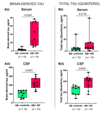 BD-tau,作为近年来神经科学领域的"明星生物标志物",其核心价值在于"精准靶向"------通过特异性识别tau蛋白的外显子4-5区域,它能完美规避颌下腺、皮肤等外周组织来源tau蛋白的干扰,像一枚精准的"探针",直抵中枢神经系统,真实反映脑内tau病理变化的核心情况[1]。研究证实,BD-tau对中枢神经系统tau病理的特异性识别能力,从根本上解决了传统tau检测"特异性不足"的痛点,为临床诊断提供了更可靠的依据。