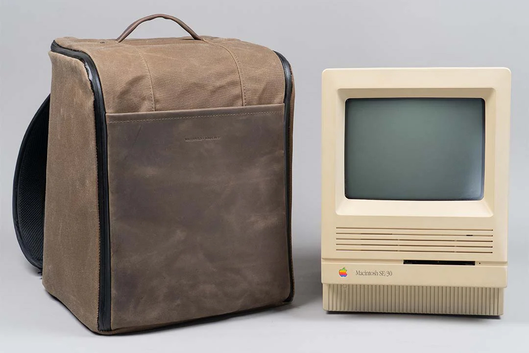 There’s a backpack for the Macintosh SE/30 made from waxed canvas and leather, and a belt-worn holster for the Apple Newton. They’re both priced at $2,026, and neither is available for purchase.