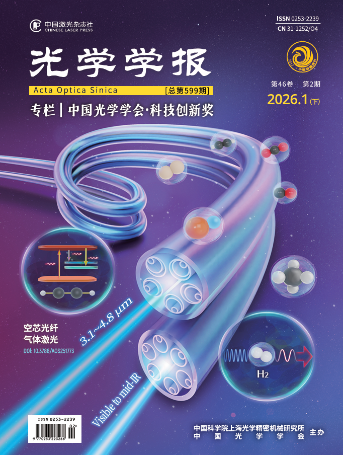 本封面的核心元素是两段空芯光纤,分别代表了两种工作原理的HCFGL。空芯结构提供了光与气体介质相互作用的理想环境,周围的CO₂、HBr等分子是光纤内的增益气体,基于粒子数反转原理可实现3.1~4.8 μm中红外波段的激光输出;文字“Visible to mid-IR”则体现基于受激拉曼散原理实现宽波段输出的能力。封面所展示的技术结合了光纤激光器和气体激光器的优点。