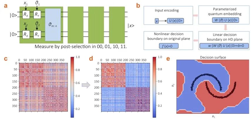 在人工智能和大数据席卷全球的今天,经典计算机的算力正逐渐接近物理极限。为了突破这一瓶颈,科学家们将目光投向了量子计算。其中,量子机器学习(QML)被认为是最具潜力的方向之一。在量子机器学习中,一个至关重要的“翻译”步骤叫做“量子嵌入”:它负责将现实世界中的经典数据(如图像、数值等)映射到高维的量子态空间(希尔伯特空间)中。在这个高维空间里,原本杂乱无章的数据会变得更加线性可分,从而让计算机更轻松地完成复杂的分类或识别任务。