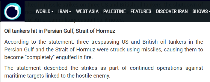 与此同时,据伊朗国家广播电视体系(IRIB)旗下的对外英文(也有法语等)新闻频道报道,伊朗伊斯兰革命卫队发布声明称,“三艘违反封锁的美国和英国油轮遭到导弹袭击,目前正在燃烧”。不过截至目前,相关说法尚未见到UKMTO或其他独立权威渠道披露具体船名与可核实细节,事件真实规模及关联性仍有待进一步确认。且且不清楚这3艘船舶是否包含上述UKMTO通告中的那一艘。