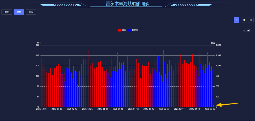 船视宝数据显示,3月1日,通过通过霍尔木兹海峡的船舶数量仅为44艘,二平时通过该海峡的船舶数量大约为110艘左右。