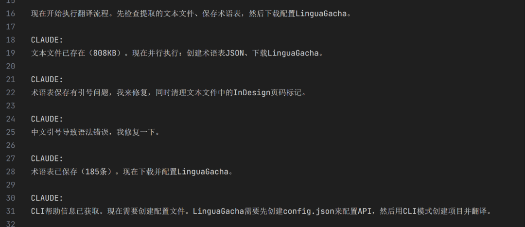 Claude Code 虽然聪明,能调研术语、能审校、能排流程。但你让它一段一段翻 13 万词,有点大材小用。LinguaGacha 优点是翻得快,术语一致性好。