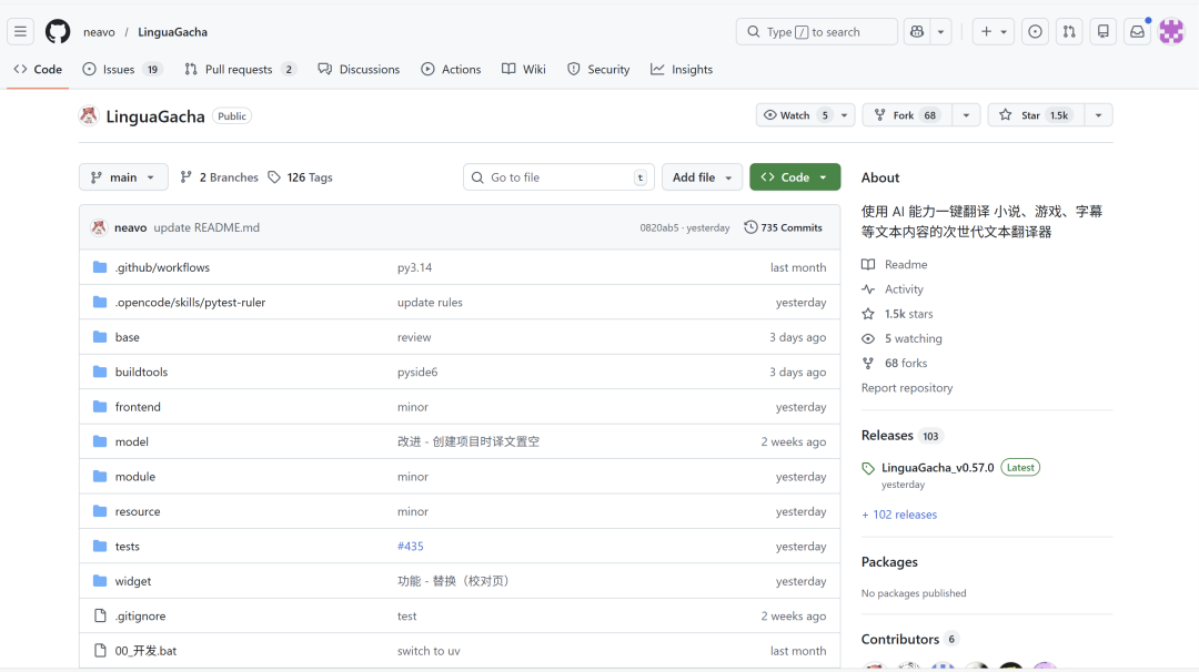 翻到一个叫 LinguaGacha 的开源项目。1500 多个 star,专门干批量翻译。术语表注入、断点续翻、高并发,能接任何 OpenAI 兼容的 API。简单说就是一条翻译流水线,不聪明但够用。