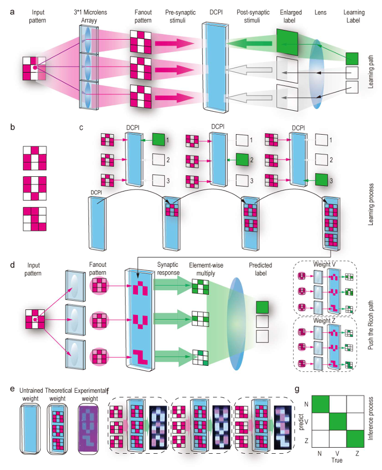 在这项研究中,张晗等人使用了一种叫 DCPI 的双色光引发剂树脂。“该材料原本被用于 3D 打印的双光固化环节,我们发现它的光化学特性恰好适配光联想学习的需求,便将其改造为光学神经网络的物理基底。”他表示。