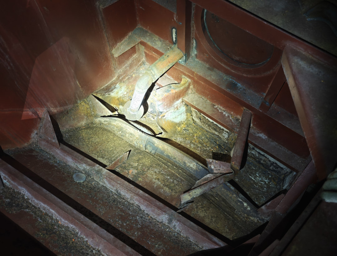 发现该问题后,海事检查人员第一时间与验船师进行沟通,验船师现场对该缺陷进行了勘验,考虑到此处船体凹陷未造成船舶破舱进水,该空舱水密性能良好,暂无进水扩散的风险,且该船即将开展船底外部检查,经海事部门、验船师及船方协商,同意该船尽快安排进坞厂修。同时要求船方在缺陷纠正前加强对该区域的日常巡查检查。