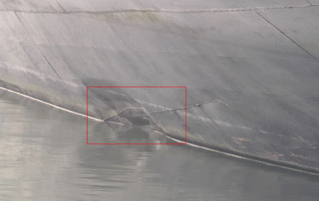 船体舭部凹陷变形(近观)。 长江海事局 闫红林 供图