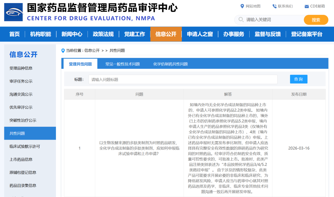 3月16日CDE更新1条受理共性问题