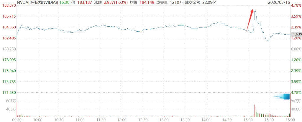 黄仁勋的万亿预期一度推动英伟达股价涨超4.3%。