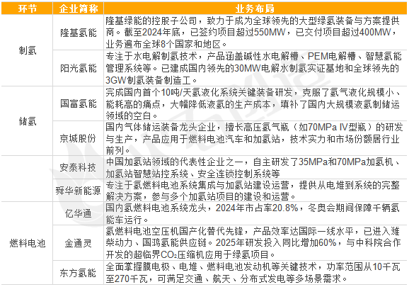 表:氢能产业代表性企业(部分)