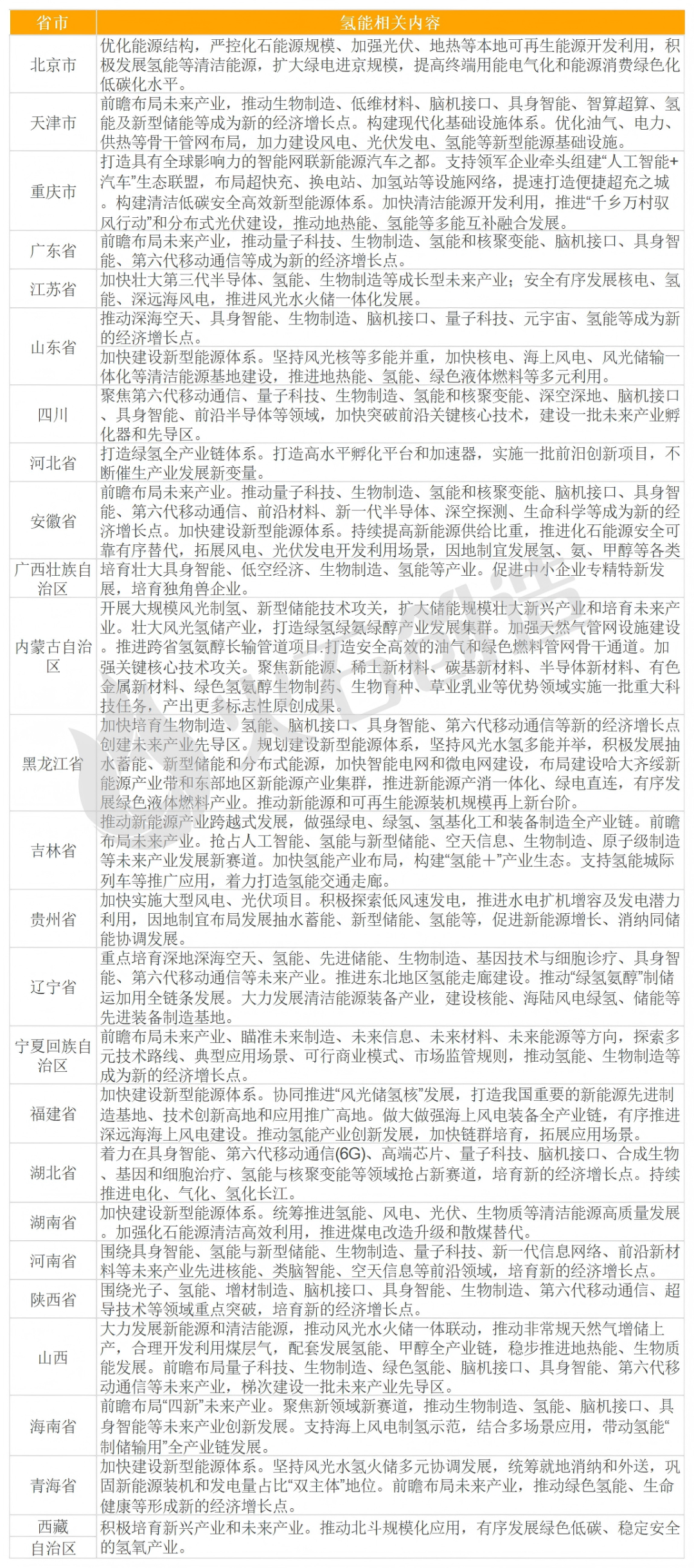 表:各地“十五五”规划建议氢能相关规划