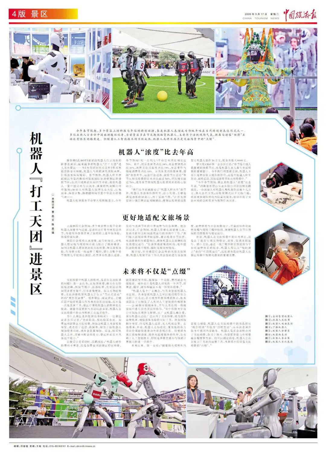 未来已来。李一言说:“随着技术成熟和内容能力增强,机器人在文旅场景中的角色将从‘吸引眼球’升级为‘持续互动’,从单次表演升级为可循环内容载体。机器人是否会高频应用于文旅场景,取决于技术、内容更新能力和场景融合程度等方面。但可以确定的是,机器人正在从展示工具走向运营工具,未来将不仅仅是文旅场景的‘点缀’。”