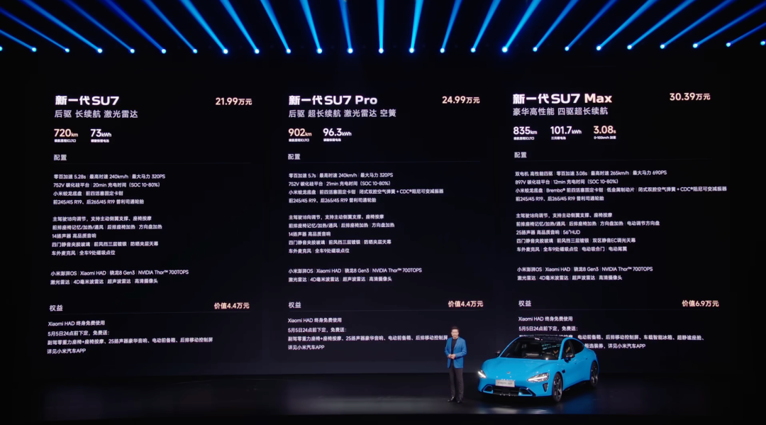 雷军公布新一代 SU7 价格及权益 | 图源:直播截图