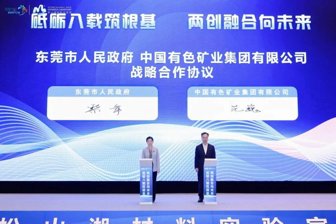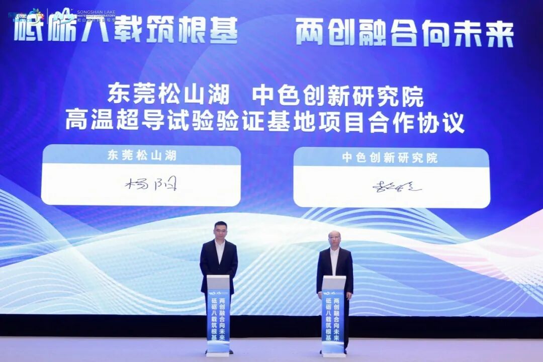 会上,松山湖材料实验室汇报建设发展情况,聘任战略咨询委员会主任及理事长。东莞市人民政府与中国有色矿业集团有限公司签署战略合作协议,东莞松山湖-中色创新研究院高温超导试验验证基地项目签约,中色创新研究院东莞松山湖分院揭牌。