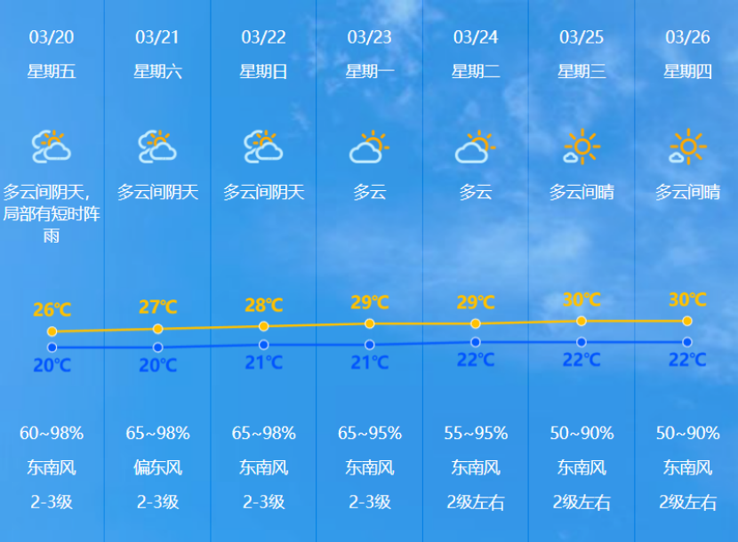预计未来一周天气整体平稳,以多云为主,间中有短时阵雨,气温小幅波动,早晚有轻雾。
