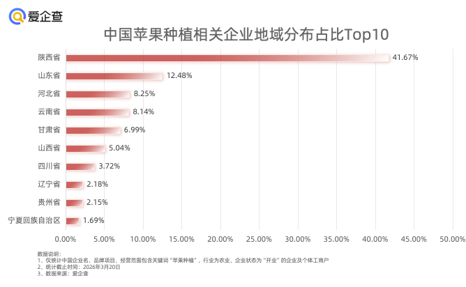 中国苹果年总产量达5100多万吨,数据显示国内苹果种植企业近半数集聚西北