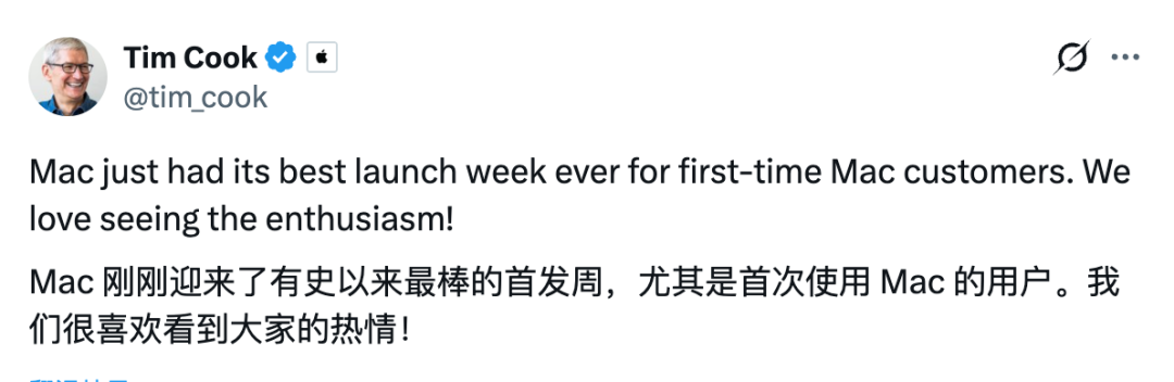 昨天,小米汽车发布最新一期「小米汽车答网友问」,并回复了「为什么新一代 SU7 发布当晚,没有披露大定数字?」这一问题。小米方面表示,新一代 SU7,从开售到现在,「锁单」进展一直比第一代更好。据悉,从去年 6 月 YU7 发布后的第二天开始,小米就选择了公布「锁单」量,而非「大定」量。小米强调,因为不可退的「锁单」数据更能真实、客观地反映用户的选择与认可;其高度关注用户购买体验的持续改善和优化,确保让锁单车主更早提车。库克:Mac 迎来了史上最佳首销周