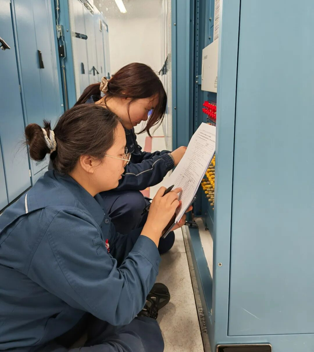 3月9日晚上八点刚过,纪婷婷和同事们便一头扎进密密麻麻的图纸与复杂的电气回路中。时间紧、任务重,他们不敢懈怠,逐条核对逻辑线路,逐根测试接线虚实,逐项演练突发故障,一步步推演保护整定的全流程。